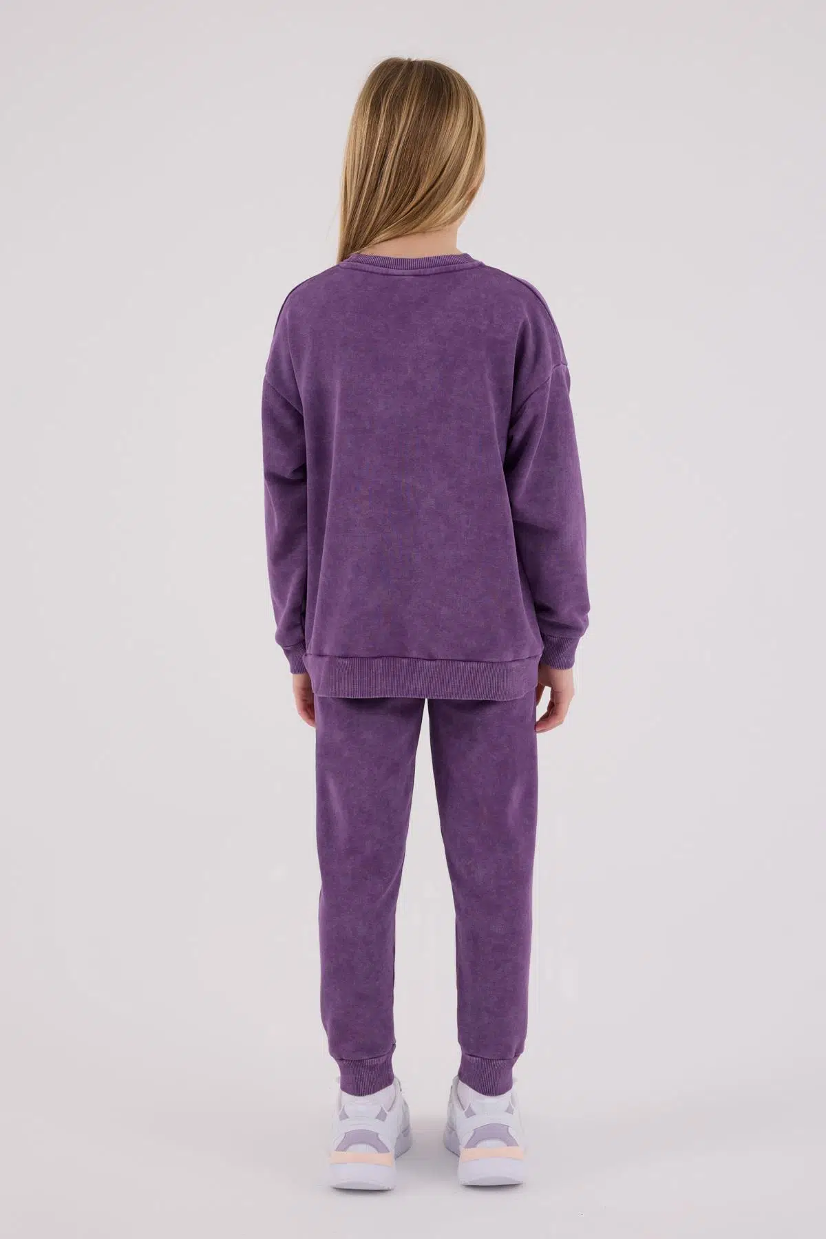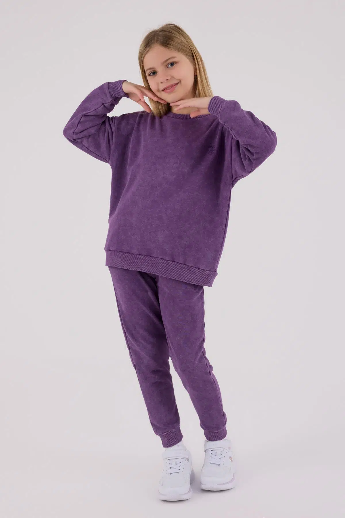 U.S Polo Assn. Kız Çocuk Mor Kalın 3 İplik Kumaş Uzun Kollu Lastikli Eşofman Takım