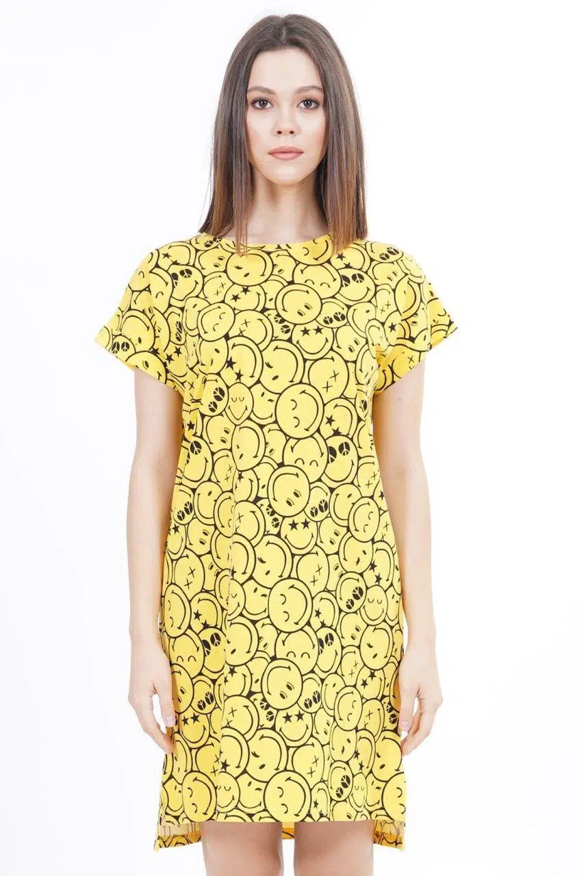 Vienetta 1021 Kadın Pamuklu Düşük Omuzlu Kısa Kol Yırtmaclı Gecelik
