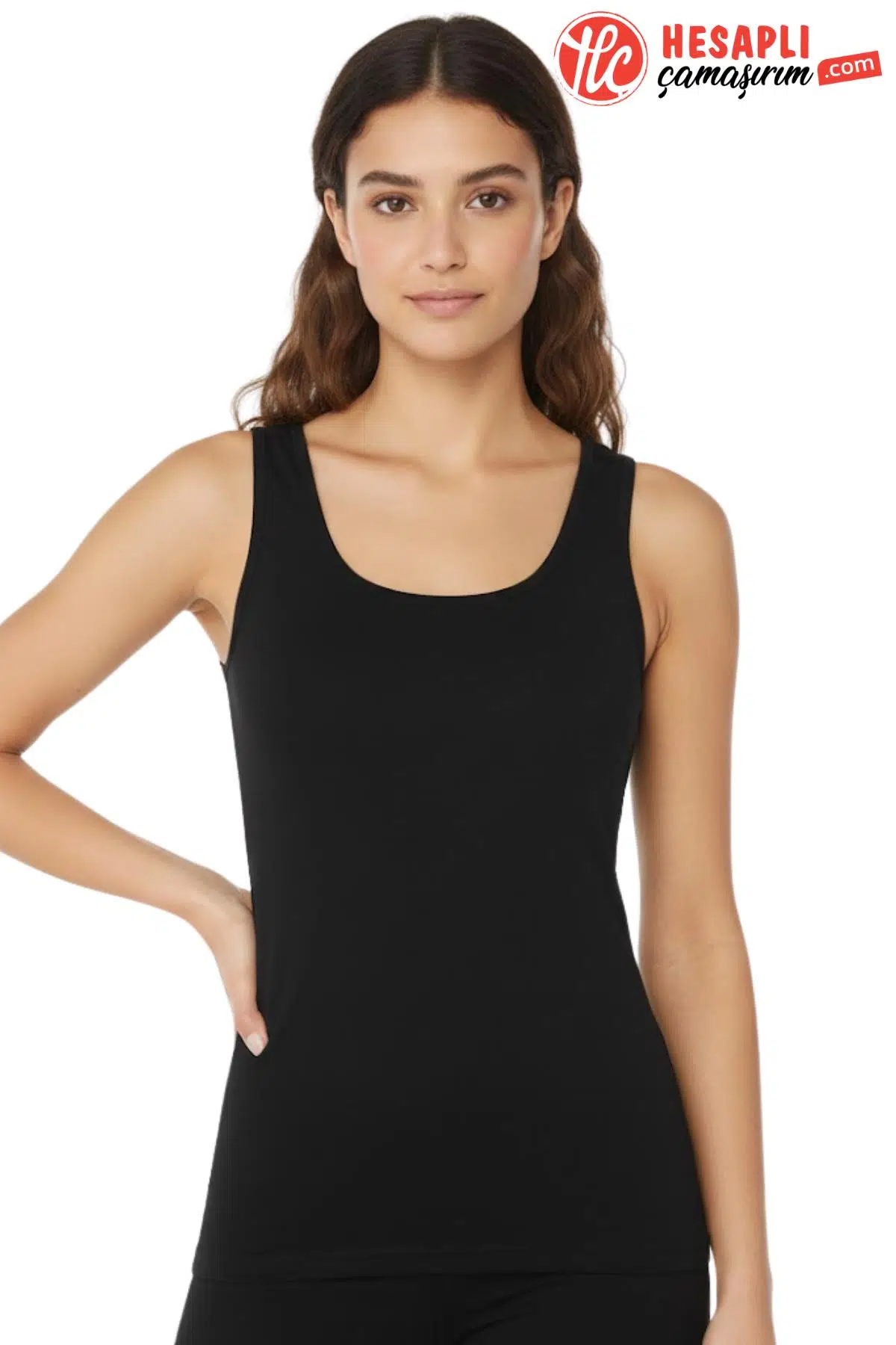 Yıldız 2038 Battal Siyah Geniş Askılı Biyeli Ribana Kadın Atlet