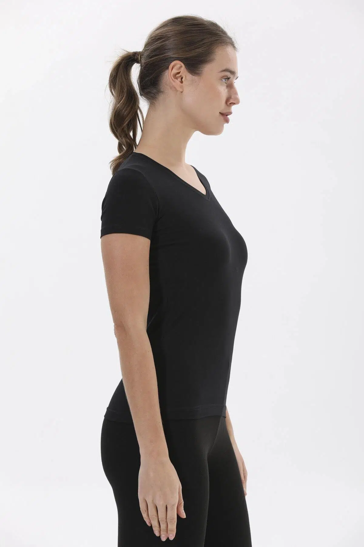 Yıldız 2371 Kadın V Yaka Siyah Kısa Kollu T-shirt