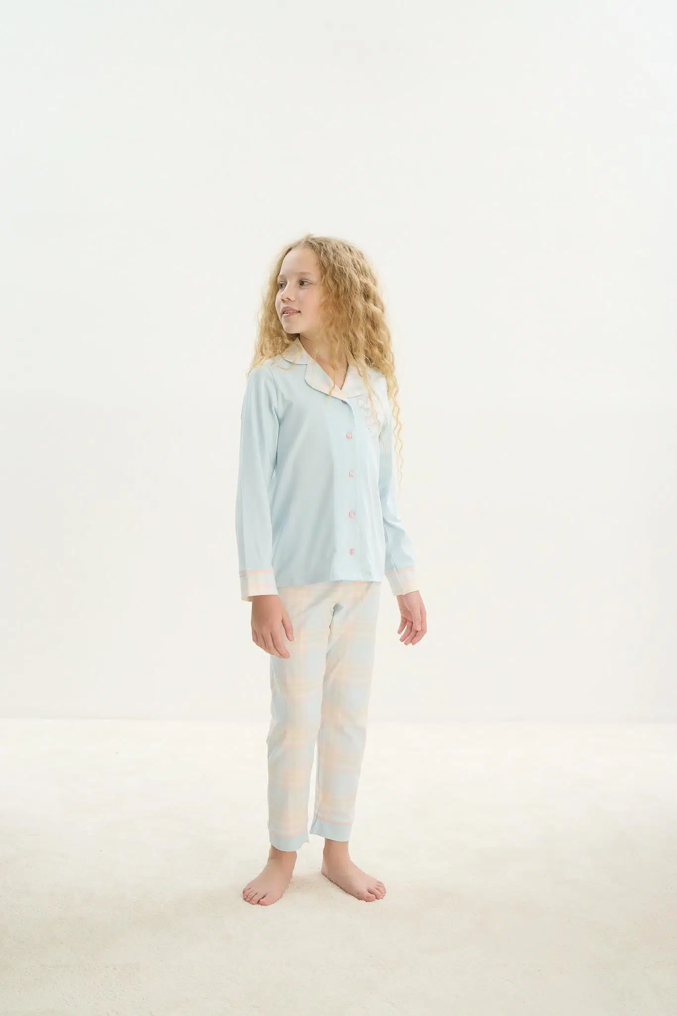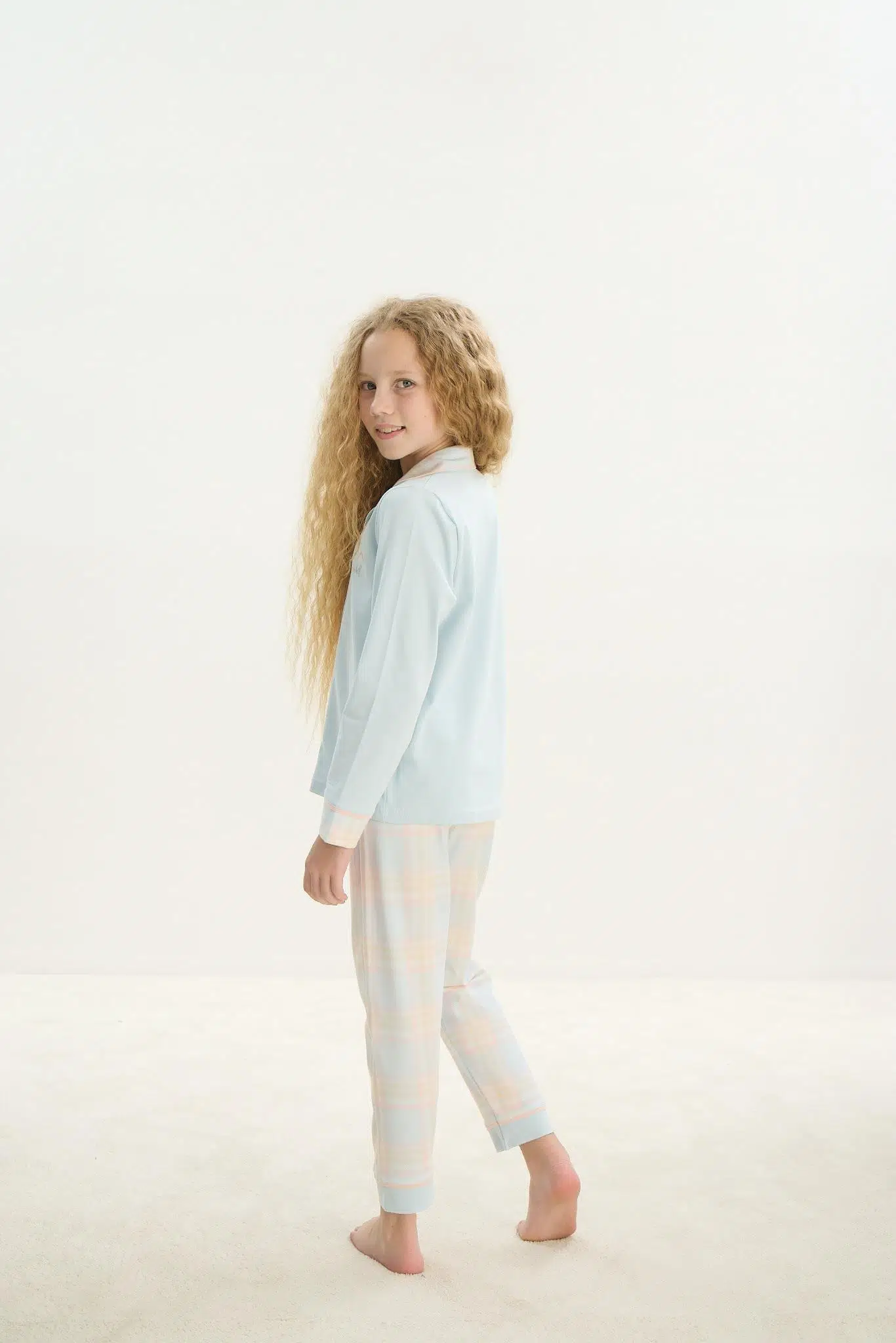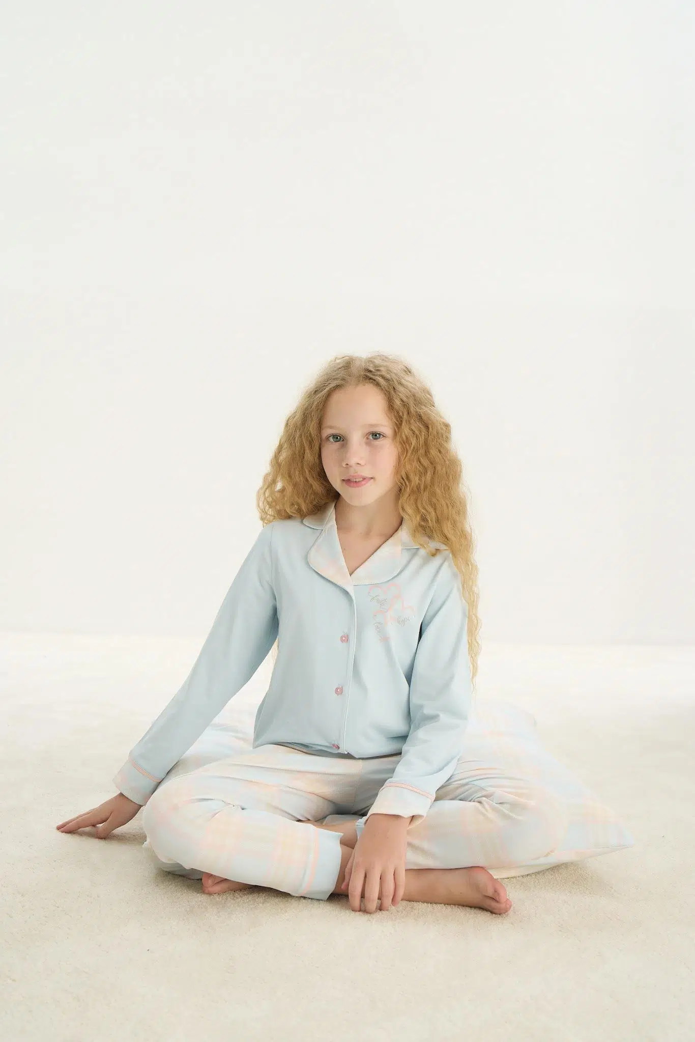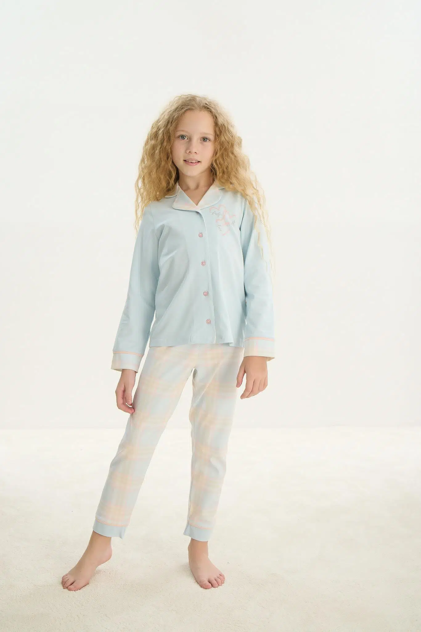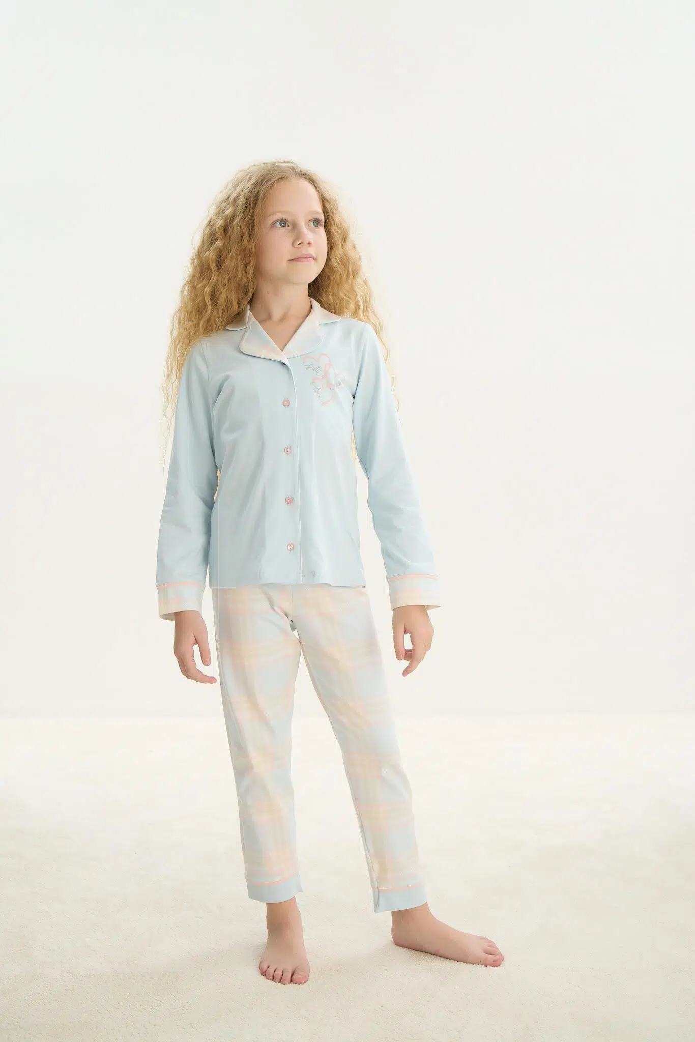 ZEYZEY 8753 Kız Çocuk Önden Düğmeli Uzun Kollu Pijama Takım